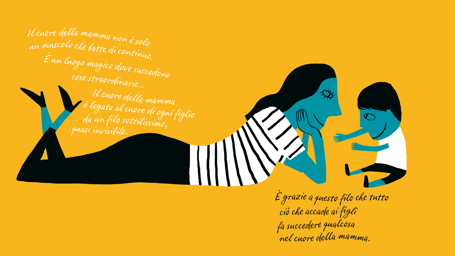 Il cuore della mamma non è solo un muscolo che batte di continuo. È un luogo magico dove succedono cose straordinarie… Il cuore della mamma è legato al cuore di ogni figlio da un filo sottilissimo, quasi invisibile. È grazie a questo filo che tutto ciò che accade ai figli fa accadere qualcosa nel cuore della mamma.