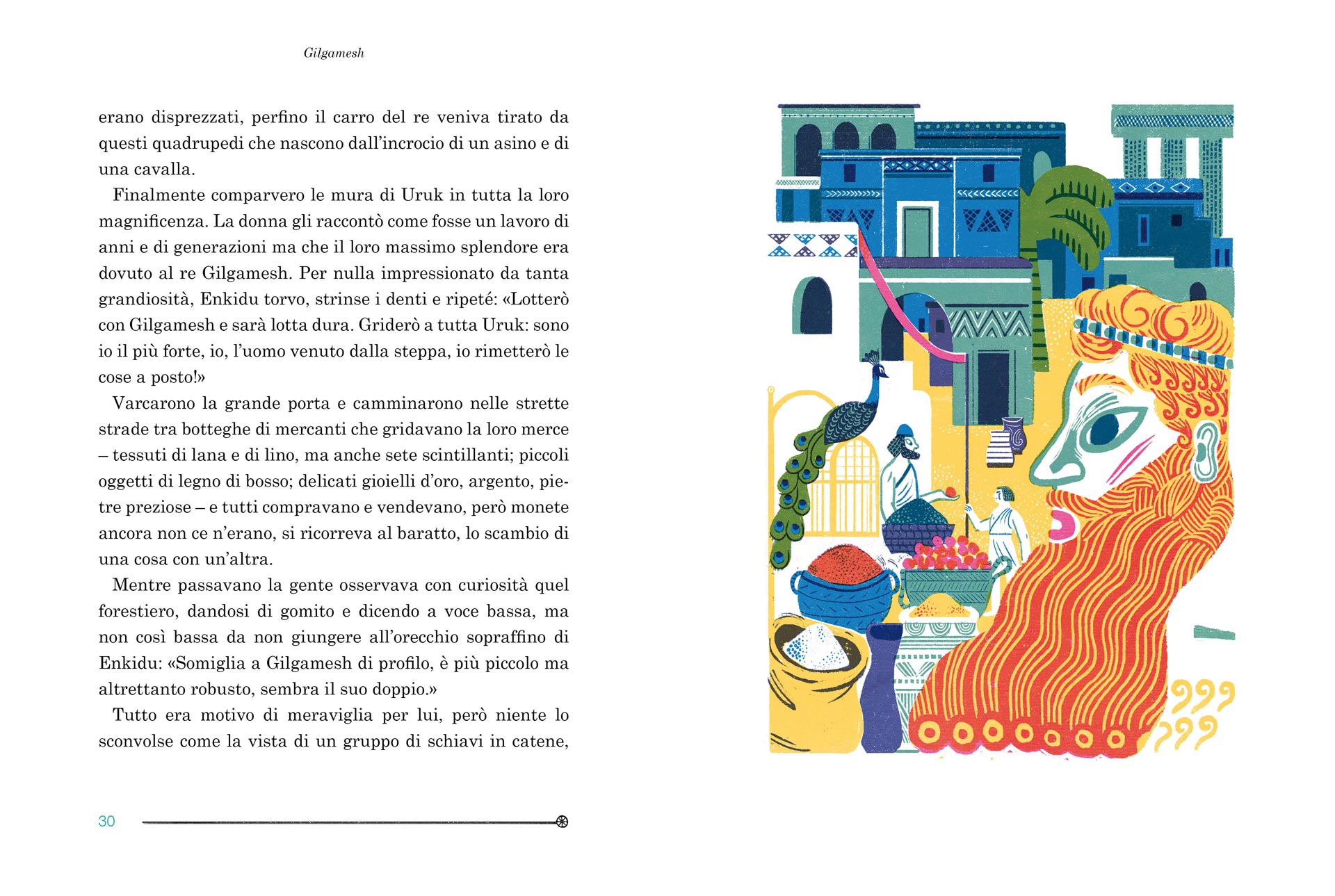 In un tempo lontano nell’antica e splendida città di Uruk viveva Gilgamesh, il sovrano invincibile, che compì imprese straordinarie con il suo compagno Enkidu e poi ossessionato da un sogno impossibile partì alla ricerca dell’immortalità. Un’epopea mitica, trascritta su tavolette d’argilla e riportata alla luce dagli archeologi solo nel XIX secolo.