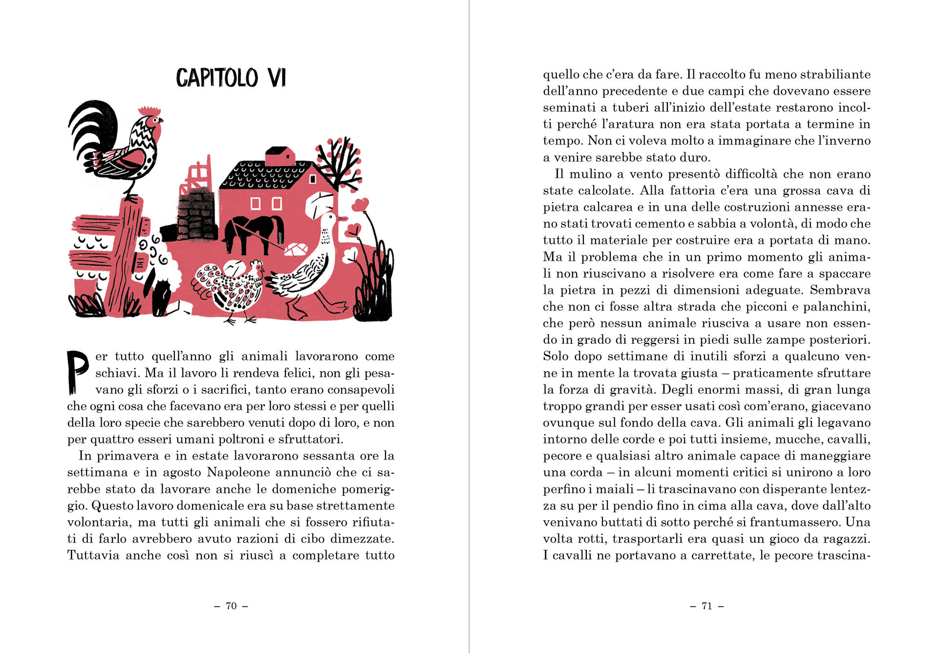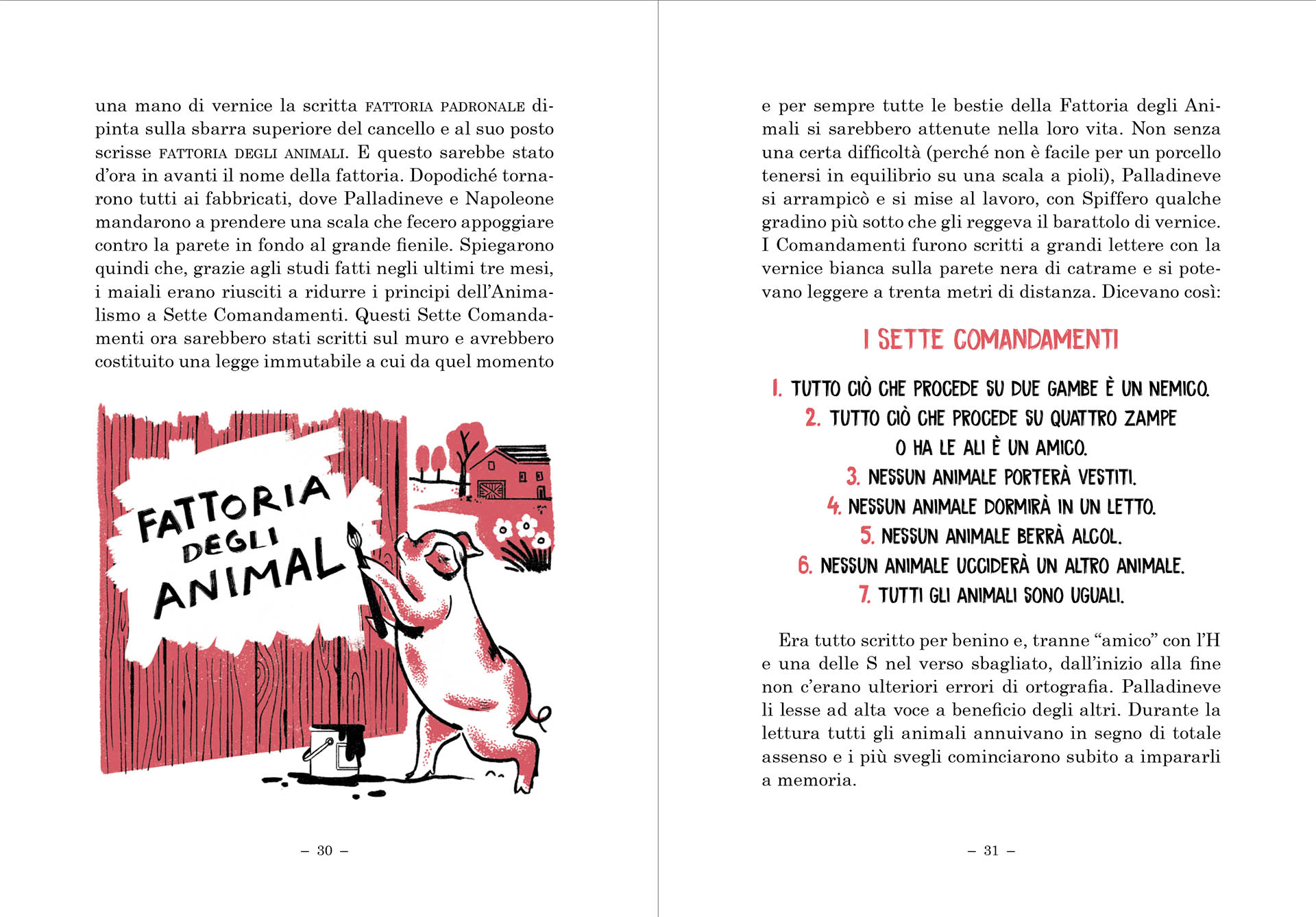 «Non lasciate che la vostra determinazione venga mai meno. Non fatevi fuorviare da altri discorsi. Non stateli a sentire quando vi diranno che l’Uomo e gli animali hanno interessi in comune, che la prosperità dell’uno significa la prosperità degli altri. Sono tutte bugie. L’Uomo non fa gli interessi di nessun’altra creatura se non i propri. Perciò tra noi animali deve sempre vigere una perfetta unità, una perfetta solidarietà nella lotta. Tutti gli uomini sono nemici. Tutti gli animali sono compagni.»