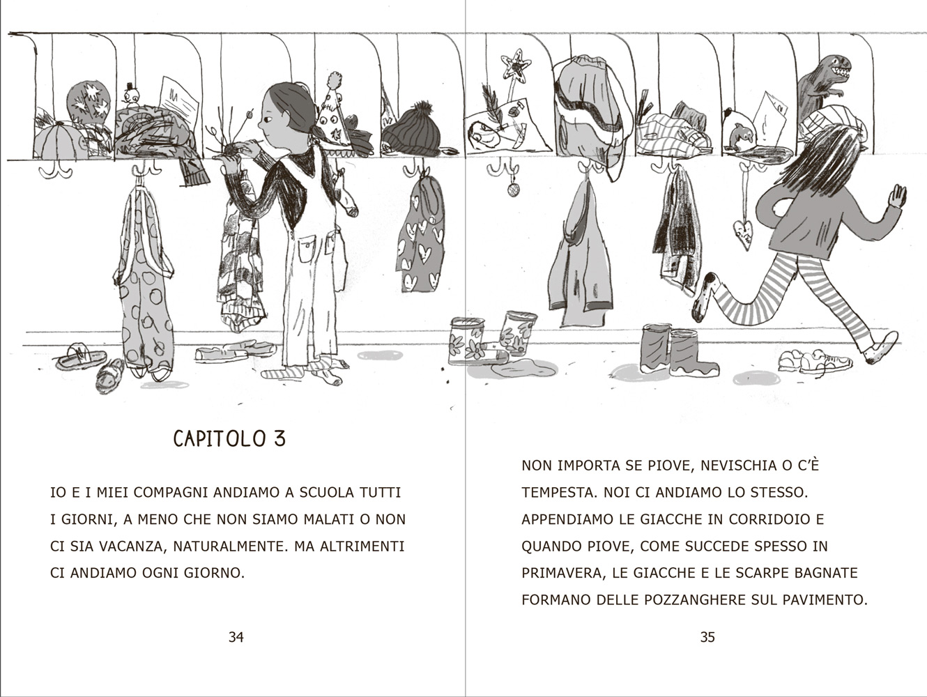 Anche se la classe è la migliore del mondo, il migliore, migliore di tutti naturalmente è Manne. Lui non è vicino a me solo nella foto, è seduto di fianco a me anche in aula. All’inizio eravamo solo semplici compagni di classe, ma poi ci siamo accorti che ci sono due cose che piacciono tantissimo a tutti e due. La prima è esercitarci a prevedere il futuro e la seconda è ridere. Quando siamo insieme, capita che scoppiamo a ridere per qualsiasi cosa. Basta che ci guardiamo e ridiamo, senza nemmeno sapere perché. E ridere con Manne è superdivertente!