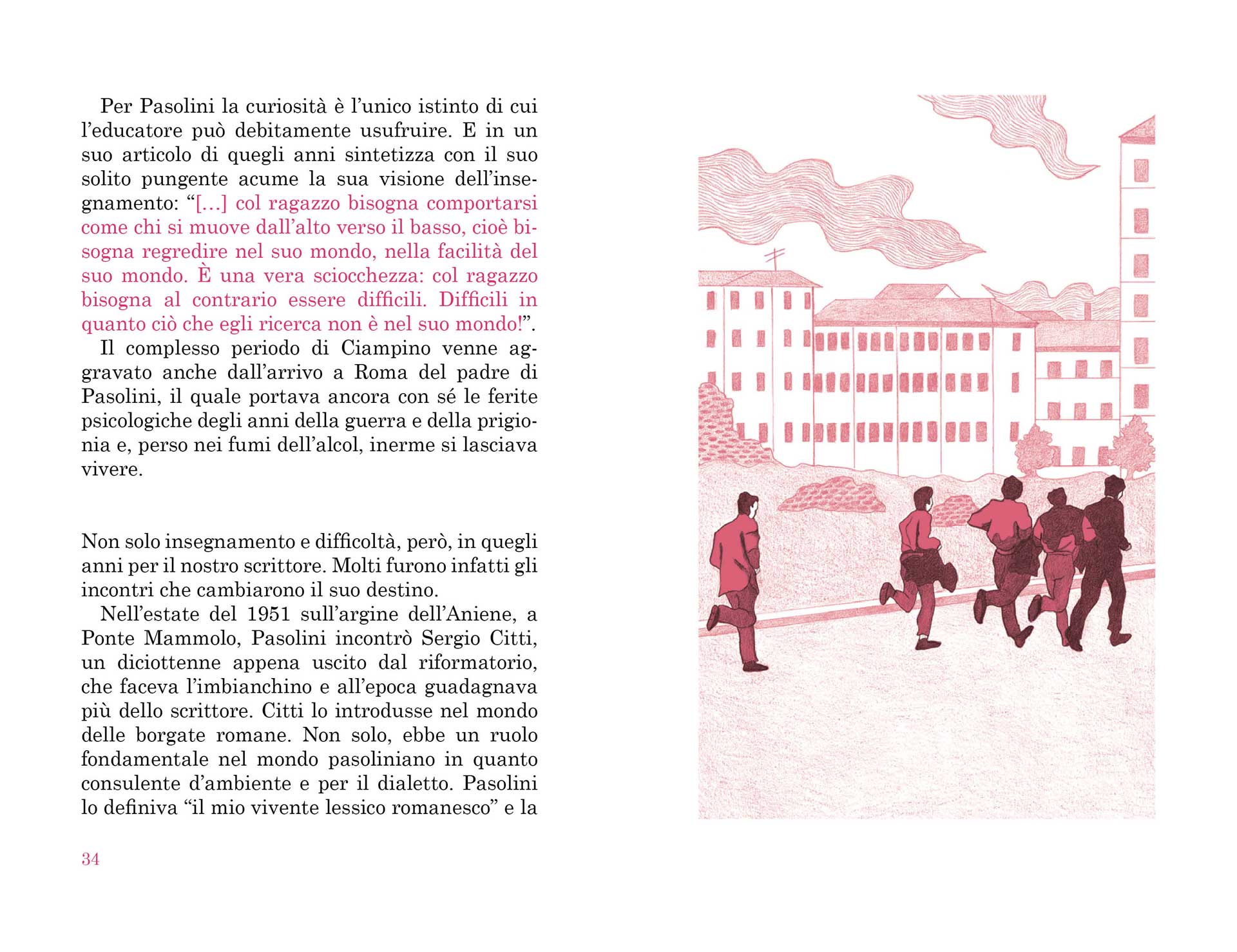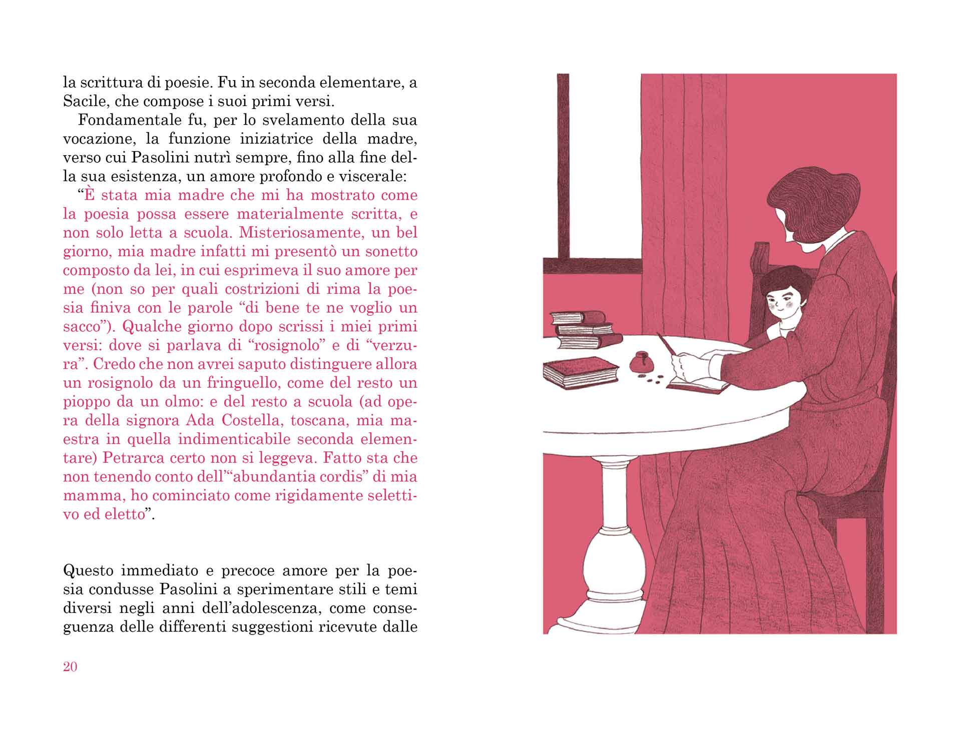 "Ciò che è certo è che se non mi fossi perduto tra le pagine delle sue poesie, in un’estate di molti anni fa, se non mi fossi interrogato con ostinazione e passione attorno all’interpretazione di alcuni suoi versi enigmatici e ostici, se non avessi letto i suoi romanzi degli anni Cinquanta e se non avessi visto e rivisto durante gli anni dell’Università i suoi film e non mi fossi scontrato, più in là con gli anni, con la forza dirompente della parola nei suoi articoli giornalistici e con la sperimentazione radicale della sua scrittura teatrale, non sarei l’uomo che sono, lo scrittore che sono, l’insegnante che sono e di certo ora non avreste tra le mani questo libro."